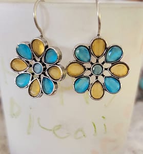 These earrings embody the essence of Indo Boho style, crafted from a fusion of German silver and brass, adorned with vibrant multicoloured stones. Inspired by nature, they feature intricate animal motifs, adding a touch of exotic charm to any ensemble.